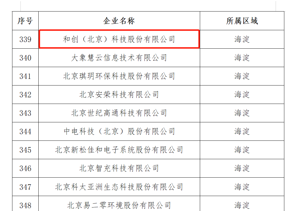 喜訊?|?和創(chuàng)科技入選北京市專精特新“小巨人”企業(yè)名單
