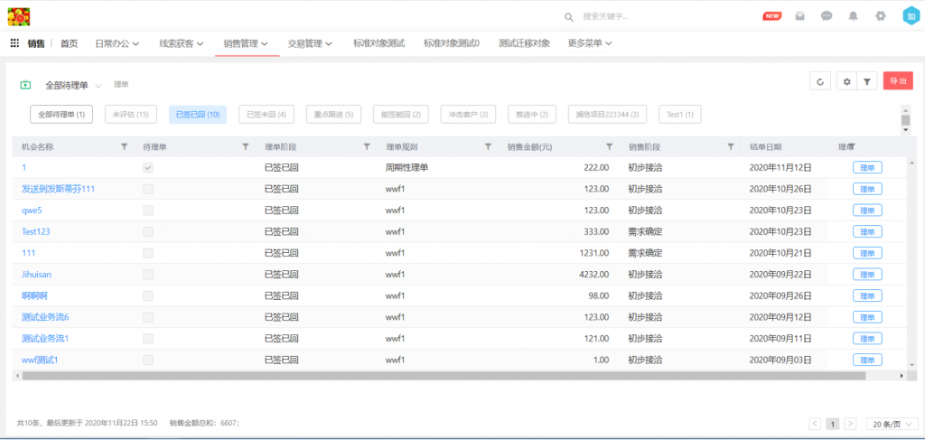 理單應(yīng)用頁面邏輯調(diào)整,按理單階段顯示全部銷售機會,且將待理單數(shù)據(jù)單獨顯示