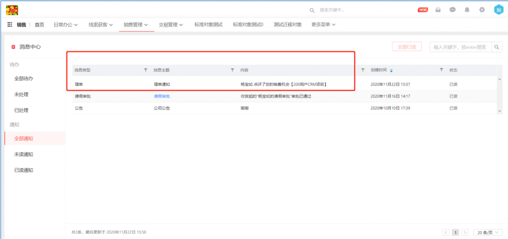 理單后,系統(tǒng)默認給機會負責(zé)人發(fā)內(nèi)部消息通知