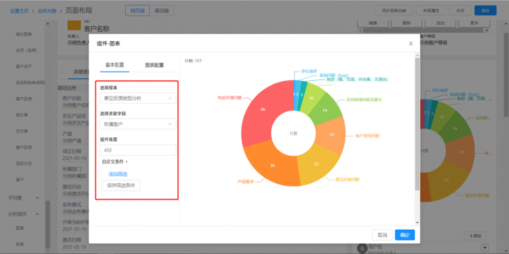 - 分析組件:選擇圖表和報(bào)表,拖入右側(cè)頁面區(qū)域進(jìn)行配置