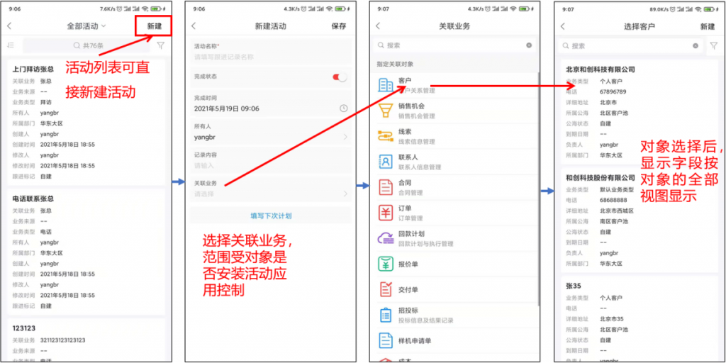 APP端活動(dòng)列表可以在列表頁直接新建,完成活動(dòng)時(shí)可快速填寫“下次計(jì)劃”
