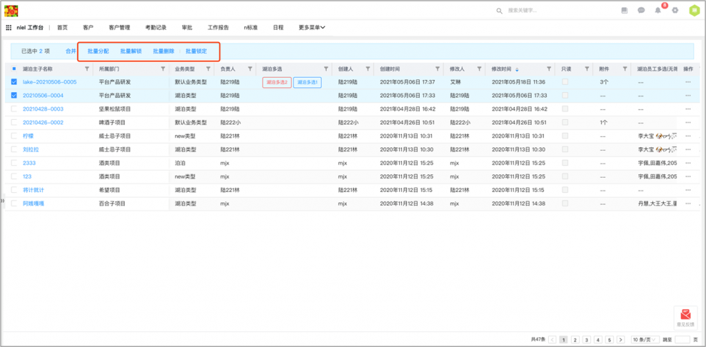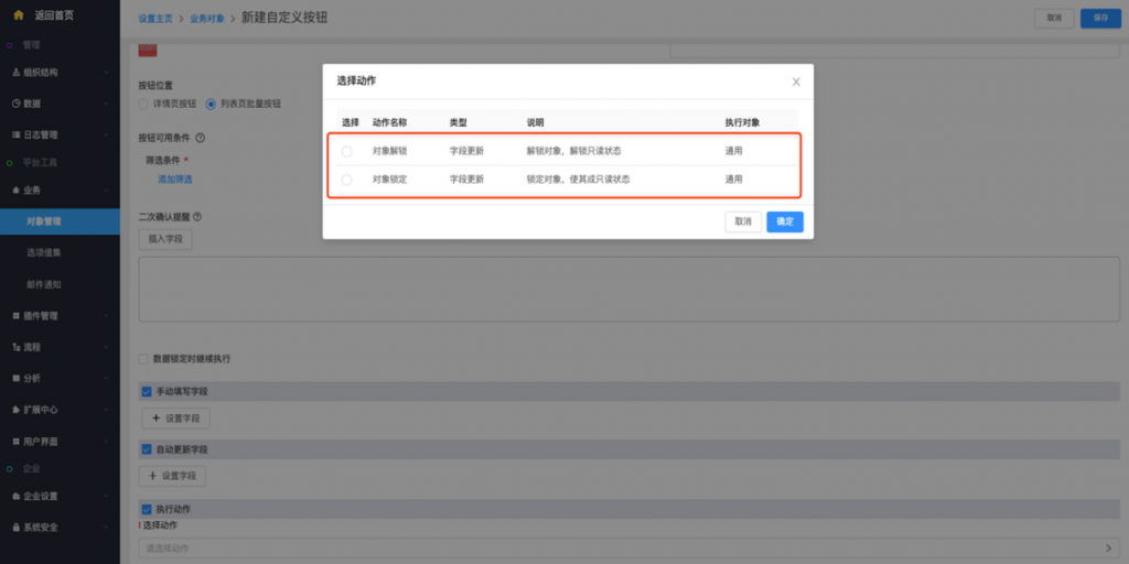 - 列表頁批量按鈕支持執(zhí)行鎖定和解鎖動(dòng)作:列表頁批量按鈕支持執(zhí)行動(dòng)作,可以執(zhí)行鎖定和解鎖動(dòng)作,在前端實(shí)現(xiàn)批量鎖定和批量解鎖