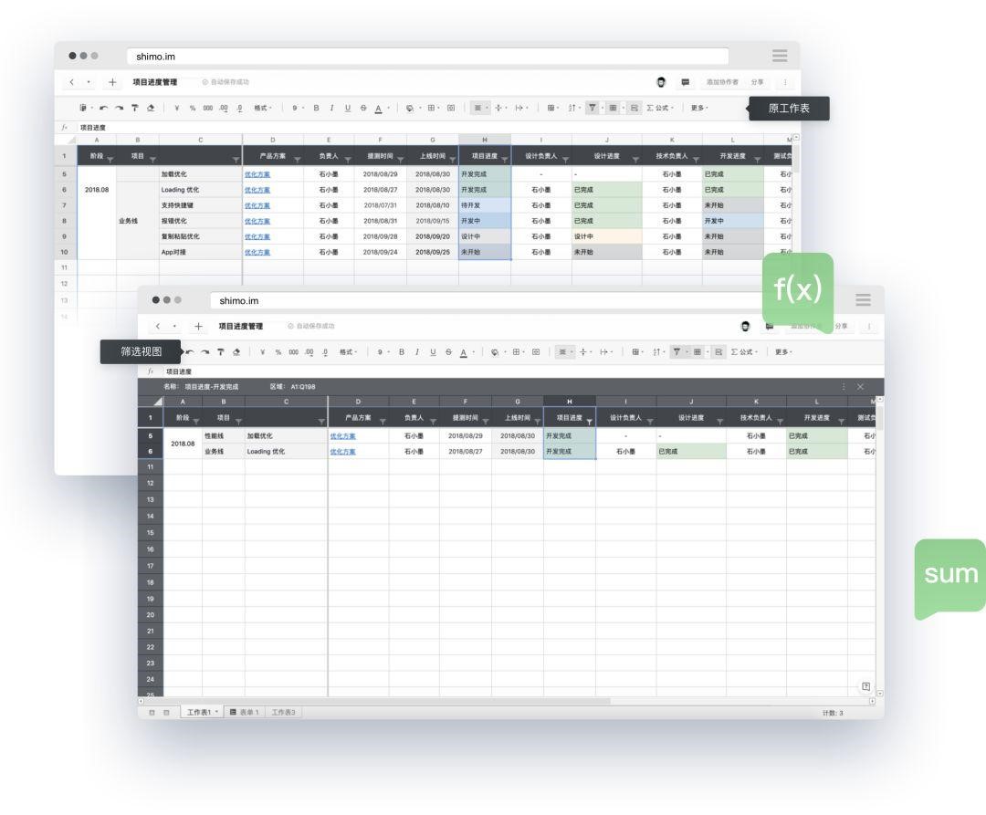 石墨表格,完美兼容本地 Excel 文件,導入導出流暢無損,無格式混亂;提供的 6 大函數(shù)類別,400+公式,基本可以覆蓋 90%主流辦公軟件;支持單元格鎖定,可根據(jù)不同協(xié)作者開放不同層級的查看/編輯權限;支持篩選視圖,協(xié)作者可獨立篩選數(shù)據(jù)而不互相干擾。