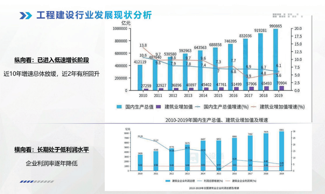 經(jīng)過對(duì)近十年數(shù)據(jù)的對(duì)比分析,可以看出建筑業(yè)作為國民經(jīng)濟(jì)支柱產(chǎn)業(yè)之一,地位依舊穩(wěn)固。但是如何擺脫利潤(rùn)率偏低的現(xiàn)狀、如何提高企業(yè)競(jìng)爭(zhēng)力成為了當(dāng)今需要探討的問題。