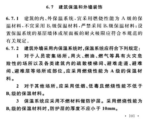 自2023年6月1日起實(shí)施的《建筑防火通用規(guī)范》(GB55037—2022),對建筑外保溫材料規(guī)定得更為細(xì)致,對除特定情況外的獨(dú)立建造的老年人照料設(shè)施、人員密集場所等,要求采用燃燒性能為##的保溫材料或制品。