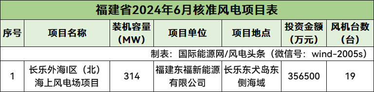 福建核準(zhǔn)1個風(fēng)電項目,總規(guī)模314MW,為海上風(fēng)電項目。