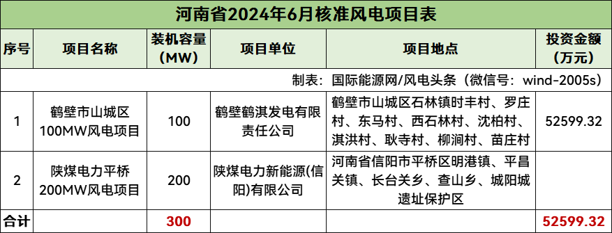 河南核準(zhǔn)2個風(fēng)電項目,總規(guī)模300MW,總投資52599.32萬元,均為陸上風(fēng)電項目。
