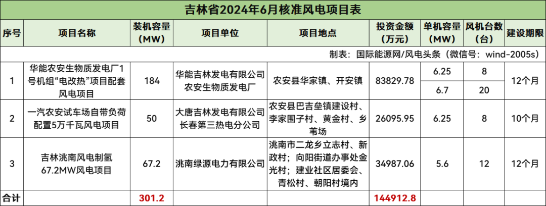 吉林核準(zhǔn)3個風(fēng)電項目,總規(guī)模301.2MW,總投資144912.8萬元,均為陸上風(fēng)電項目。