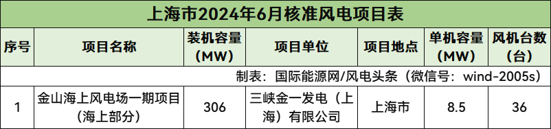 上海核準(zhǔn)1個風(fēng)電項目,總規(guī)模306MW,為海上風(fēng)電項目。