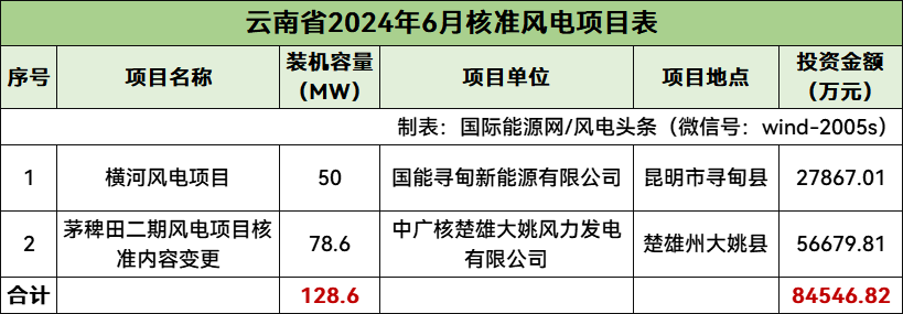 云南核準(zhǔn)2個風(fēng)電項目,總規(guī)模128.6MW,總投資84546.82萬元,均為陸上風(fēng)電項目。