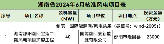 湖南核準(zhǔn)1個風(fēng)電項目,總規(guī)模40MW,總投資23000萬元,為陸上風(fēng)電項目。