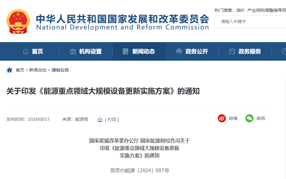 8月21日,國(guó)家發(fā)改委辦公廳與國(guó)家能源局綜合司攜手發(fā)布了《能源重點(diǎn)領(lǐng)域大規(guī)模設(shè)備更新實(shí)施方案》,該方案設(shè)定了雄心勃勃的目標(biāo):至2027年,能源關(guān)鍵領(lǐng)域的設(shè)備投資規(guī)模將較2023年實(shí)現(xiàn)25%以上的顯著增長(zhǎng)。這一戰(zhàn)略部署旨在通過(guò)“三改聯(lián)動(dòng)”——煤電機(jī)組的節(jié)能、供熱及靈活性改造,以及輸配電、風(fēng)電、光伏、水電等領(lǐng)域的設(shè)備更新與技術(shù)革新,全面推動(dòng)能源行業(yè)的轉(zhuǎn)型升級(jí)。