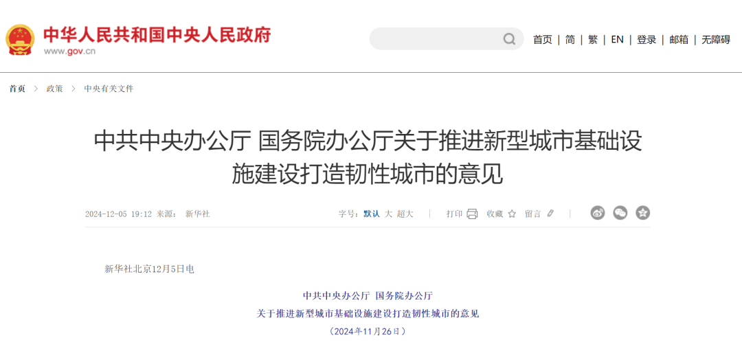 中辦、國(guó)辦發(fā)布重磅意見(jiàn)!推進(jìn)新型城市基礎(chǔ)設(shè)施建設(shè)打造韌性城市