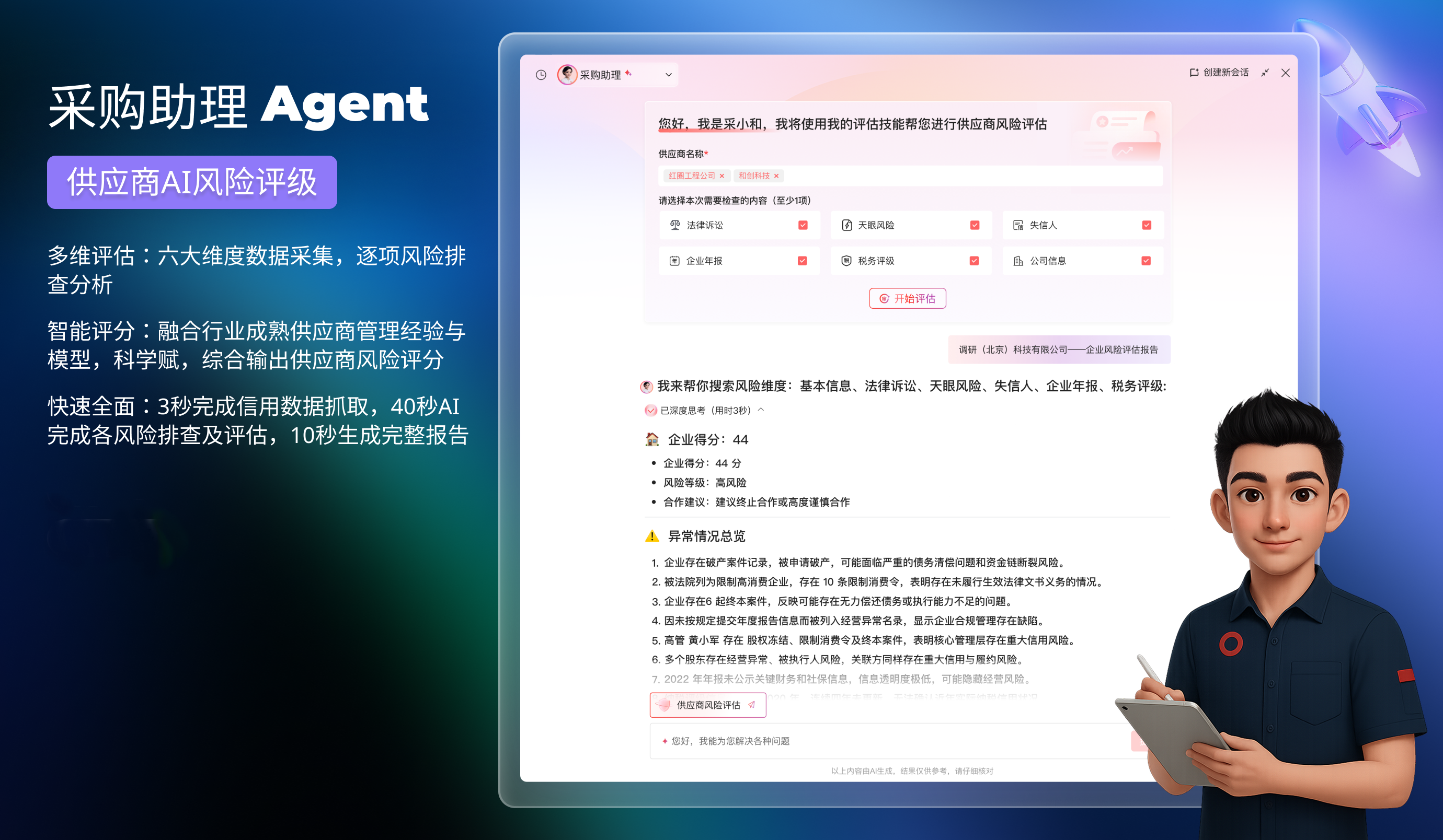 幾十個(gè)項(xiàng)目同時(shí)跑,最怕供應(yīng)商“爆雷”和單據(jù)“打架”。紅圈采購助理Agent,幾秒鐘內(nèi)就能把供應(yīng)商的底褲扒個(gè)干凈——從法律訴訟到失信記錄,從稅務(wù)評(píng)級(jí)到企業(yè)年報(bào),六大維度一掃而過,3秒抓數(shù)據(jù),40秒出報(bào)告,風(fēng)險(xiǎn)高低一目了然。而一線的材料員們,也告別了對(duì)著混凝土票、手寫單子熬夜敲鍵盤的日子。紅圈AI錄單助手像個(gè)長了眼睛的“掃描儀”,甭管多潦草的單據(jù),AI自動(dòng)識(shí)別、自動(dòng)提取、自動(dòng)匹配,錄入系統(tǒng)秒級(jí)搞定,省下90%的功夫。