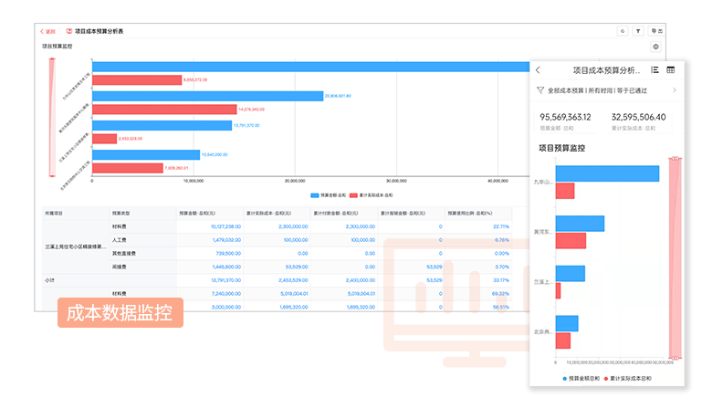 紅圈管理系統提供多維度動態成本管控,管理層可分權限隨時查看各項目成本最新動態,詳細數據可鉆取查詢,實際成本可視化展現。通過成本預控預警,讓公司和項目的各項成本盡在預算控制中。